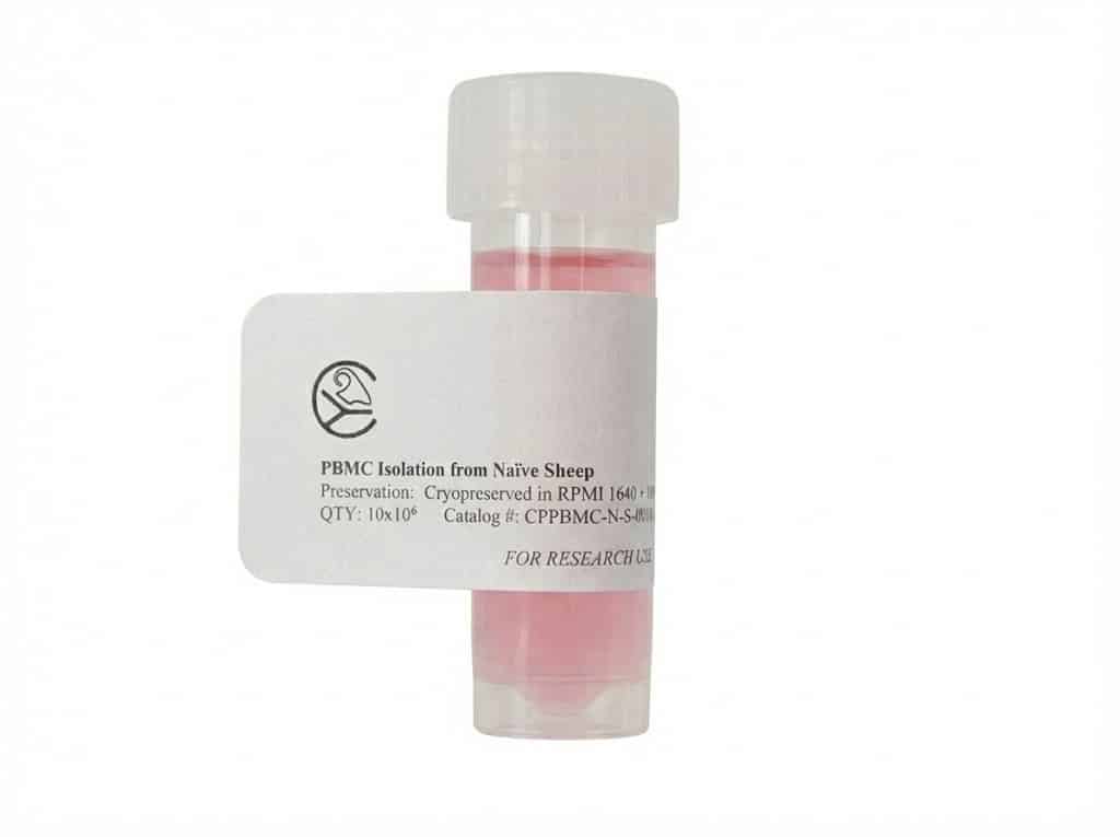 Capralogics offers naive peripheral blood mononuclear cells (PBMCs) isolated from healthy, non-immunized sheep of US orgin, ideal for applications requiring baseline, antigen-naïve immune cells to study fundamental immunology, antibody discovery, vaccine development and immunotherapy research. PBMCs are isolated using Ficoll-Paque density gradient.